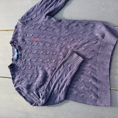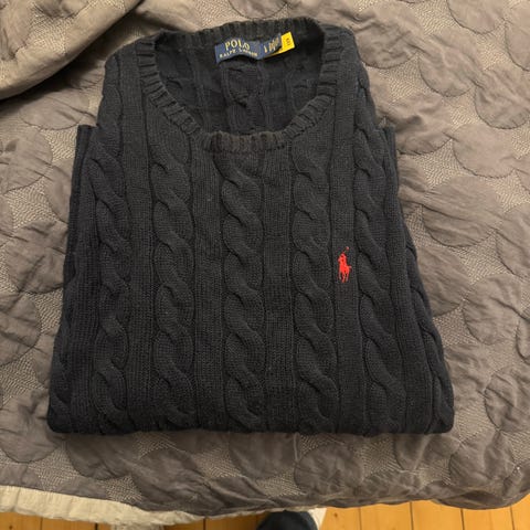 Cremefarvet Ralph Lauren striktrøje – klassisk og stilren 🤍