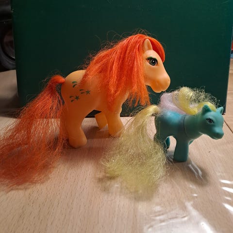 My Little Pony bæreæske med figurer og tilbehør i flerfarvet plastik. Sættet indeholder en rosa bæreæske med ruminddeling til ponyfigurerne. Medfølgende er flere små ponyfigurer i forskellige farver med manke og hale, samt mindre plasttilbehør som fx ringe eller små skåle. Egnet som legetøj til børn, til leg med fantasiverdener og opbevaring af figurerne i den medfølgende æske.