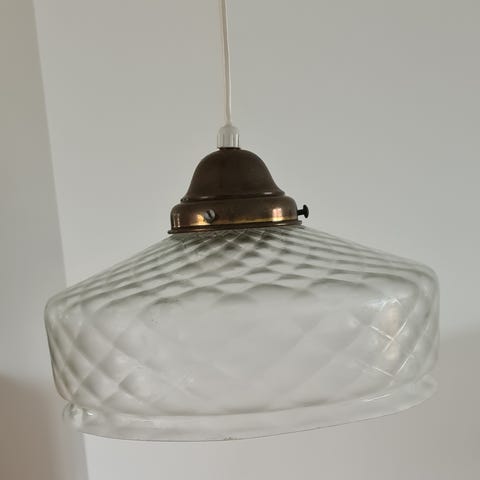 Gammel loftlampe i glas med perlekant