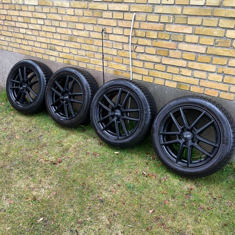 Super flotte og velholdte O.Z RACING sortlakeret alufælge med Vredestein vinterdæk.