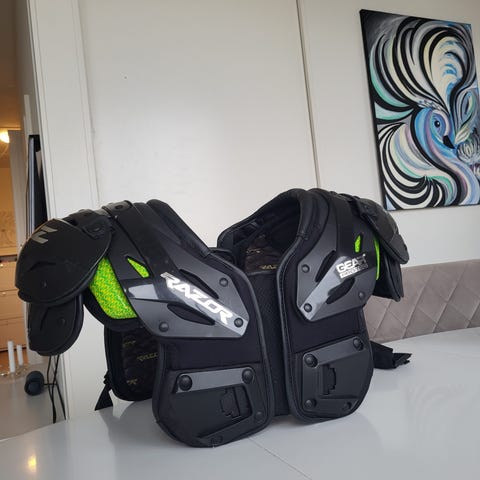 God stand. Shoulderpads til amerikansk football i størrelse medium.
