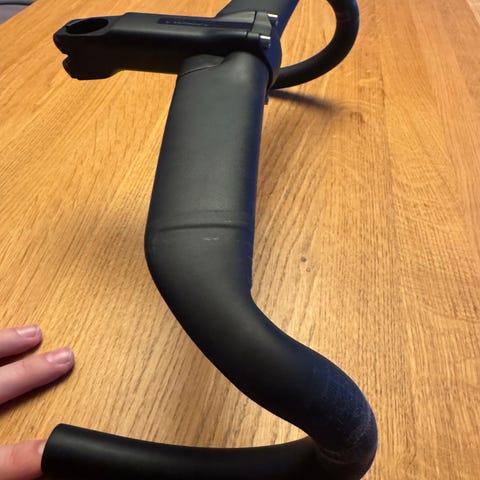 Winspace Hyper Zero Aero integreret racerstyr og frempind er samlet i én enhed med aerodynamisk udformning. Velegnet til racercykel med skjult kabelføring gennem styret. Materialet fremstår som letvægtskonstruktion, typisk anvendt til landevejscykling og konkurrencebrug. Passer til styrfitting med integreret montering i kronrøret; mål og vinkel fremgår af mærkningen på undersiden af styret (bl.a. B:120 mm og vinkel -7°).