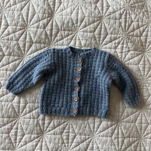 Trøje, Strikketrøje, str. 86, Super fin hjemmestik i lilla garn med 2 knapper fortil.