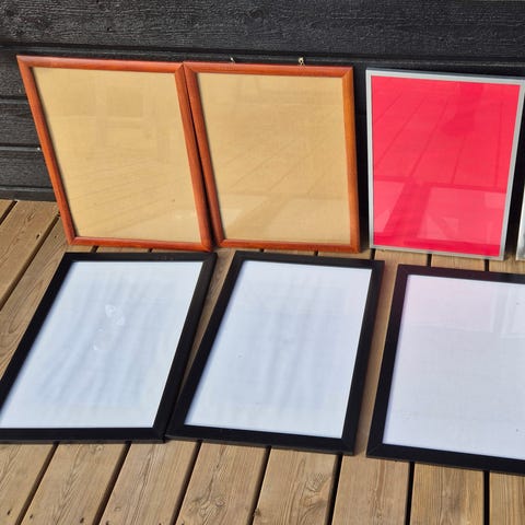 Sælger tre billederammer i egetræ fra Desenio samlet. Glasset har enkelte mærker men prisen er derefter. Træet står pænt. De to plakater følger med eller kan fjernes inden køb, hvis ønsket
