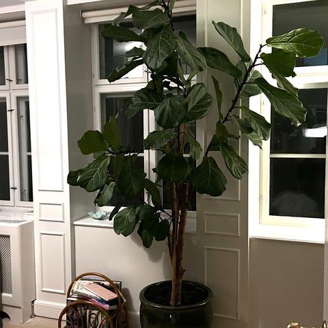 Violin figentræ på cirka 2.3 m med stamme. Sælges inklusiv krukke, som er på hjul. Vi har haft træet i 3 år. Det er super nemt at passe og har fortsat sat nye skud. Sælger pga pladsmangel.
