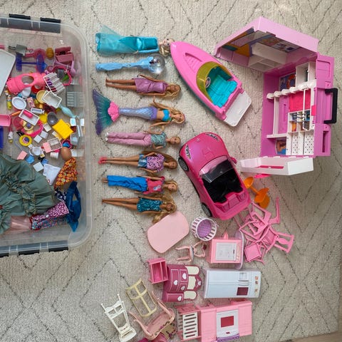 Bil, surfboard, hest, scooter og indkøbsvogn
