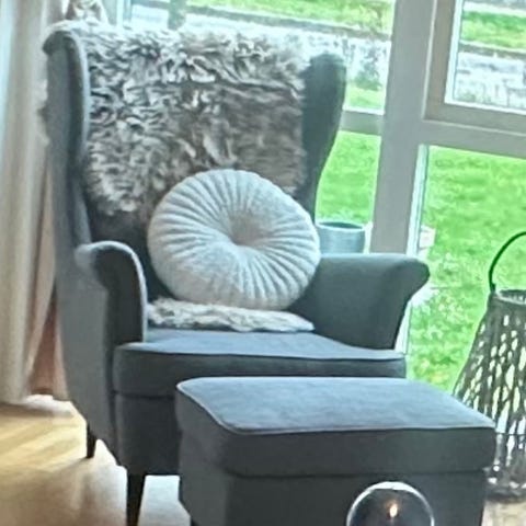 Flot ikea lænestol inkl. puf i flaskegrøn. Modellen strandmon.