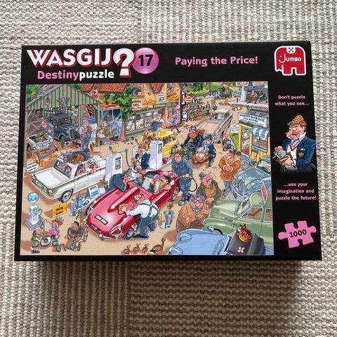 Wasgij Destiny 12 Market Mayhem puslespil med motiv af et travlt marked. Puslespillet består af 1000 brikker og er velegnet til voksne og større børn, der kan lide udfordrende puslespil. Leveres i original æske fra producenten Jumbo.