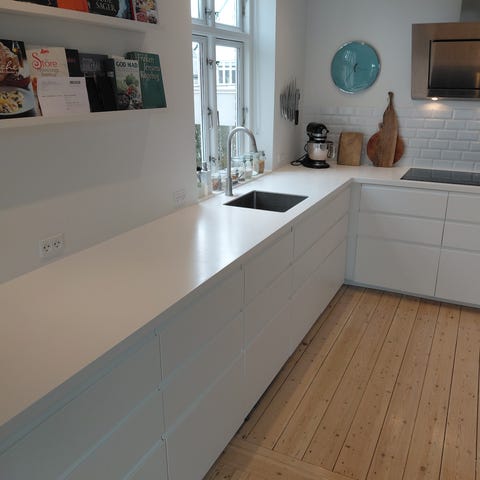 Har flere forskellige bordplader med vaske og bordplader med understel