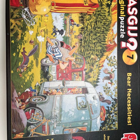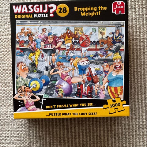 Wasgij Original 32 The Big Weigh In puslespil med 1000 brikker. Motivet viser en humoristisk scene med mennesker til et udendørs arrangement. Puslespillet er egnet til voksne og større børn, der kan lide udfordrende og detaljerede motiver. Velegnet til hyggestunder derhjemme og som samlerpuslespil for fans af Wasgij-serien.