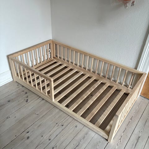 Monty Gulvseng 160×80 – Vintage købt på Beba.dk købt januar 2025. Nypris: 2000,- Premium madras købt samme sted. Nypris: 1300,-