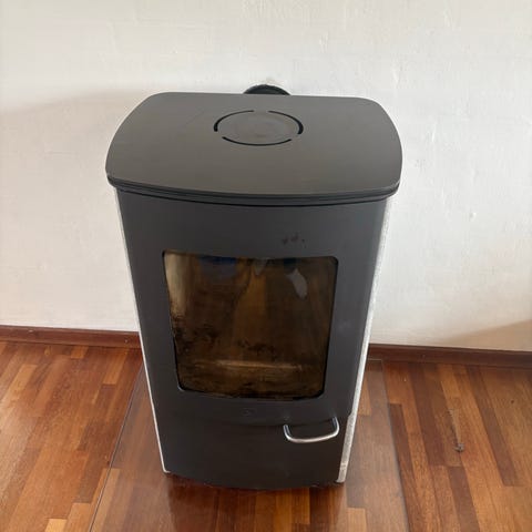 Brændeovnen er taget ned og skal afhentes.