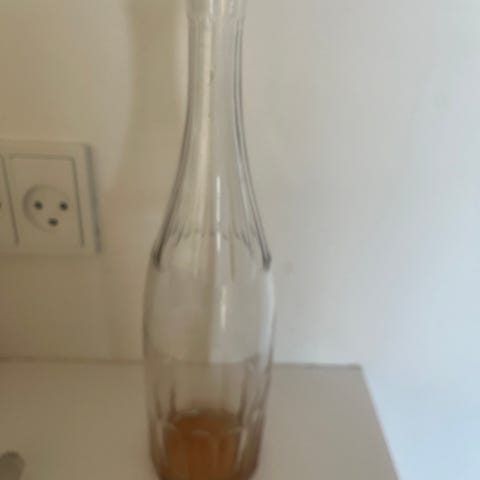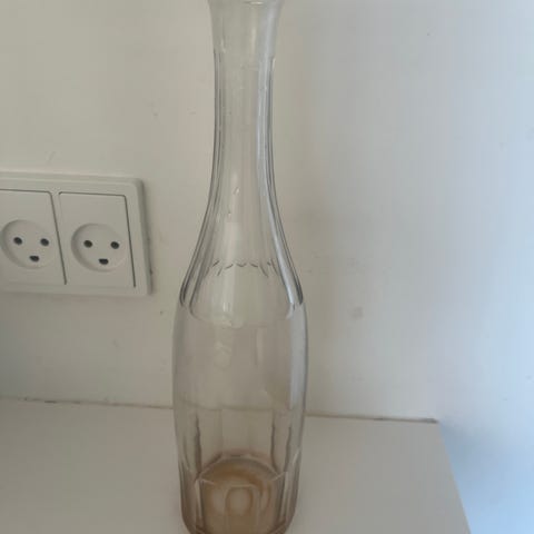 Har lidt afslag i bunden, en lille revne i toppen og et mærke ca midtpå.