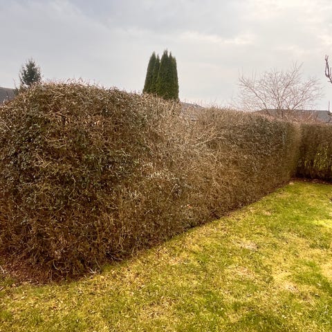AI skriver om hækken: Buskene danner en kompakt hæk og kan klippes i ønsket højde og bredde. Egnede til plantning langs skel, terrasse eller indkørsel, hvor der ønskes en grøn afskærmning hele året.