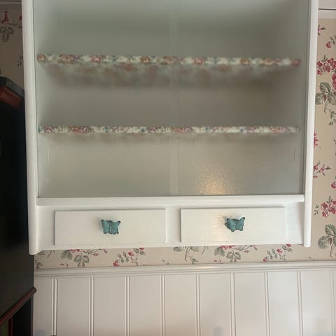 Københavnerskab med tre skuffer og et enkelt matteret glas