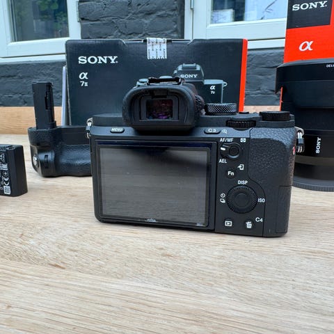 Sony Alpha 7S II full-frame spejlløst kamera i god brugt stand. Kameraet har elektronisk søger, stor bageste skærm og flere fysiske knapper til nem styring af indstillinger.