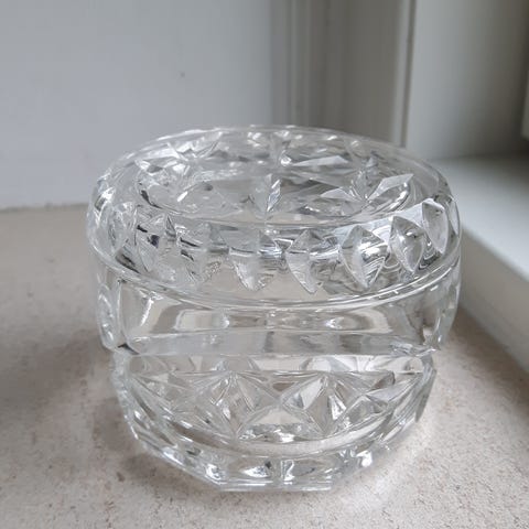 Smuk Arcade askeskål, designet af Christel Holmgren-Exner for Holmegaard i 1968. Smuk til smykker - eller endda til servering.