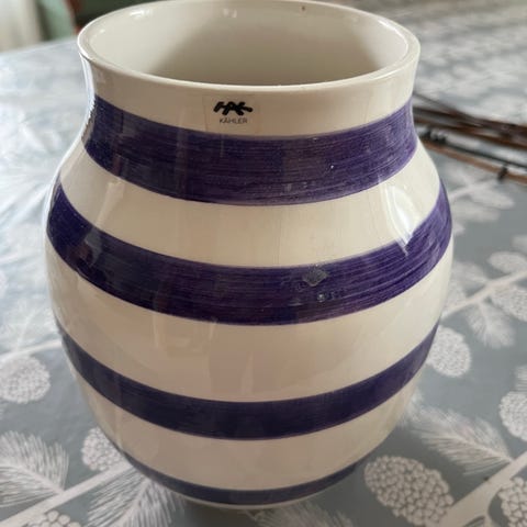 Kähler Omaggio vase og fad stribet keramik sort/hvid