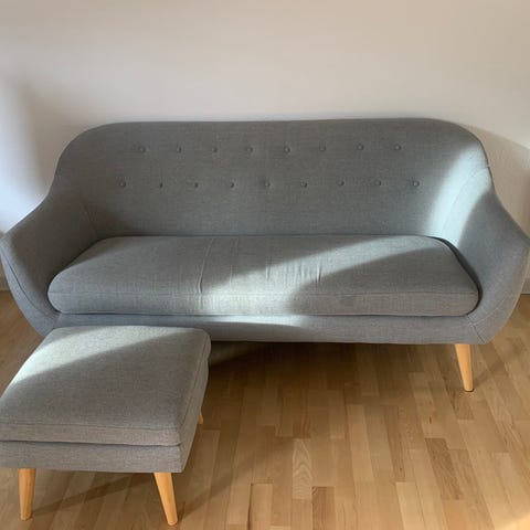 Sælger min Kragelund sofa i mørkgråt betræk og mørkbejdset egetræsstel. Sofaen er generelt i god stand, men har let brugsspor efter almindelig daglig brug. Betrækkene på både puder og hynder kan tages af, hvilket gør rengøring nem.