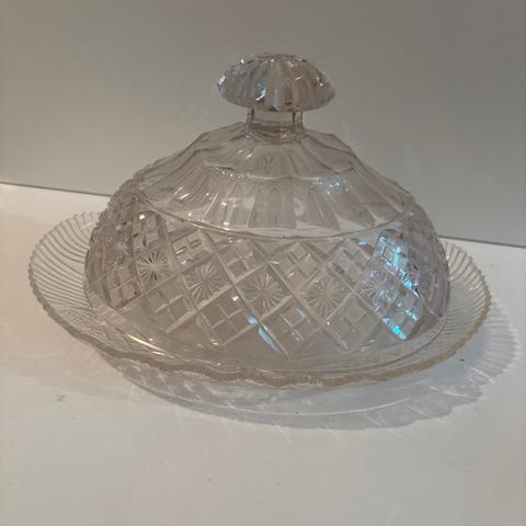 Flot antik krystal – Smørklokke og Vase