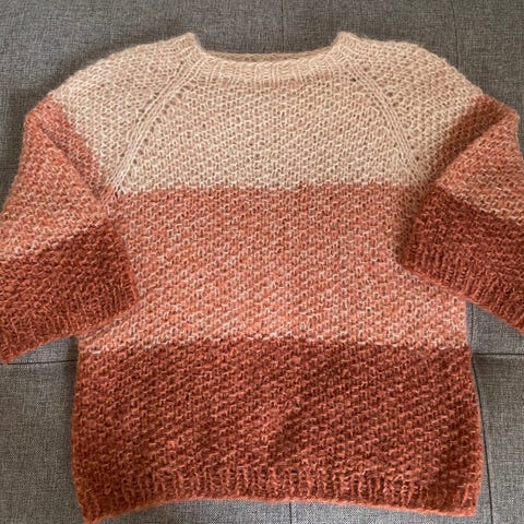 Smuk strik, håndstrikket i uld/mohair