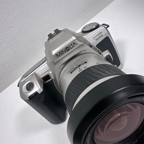 Minolta XE-5 spejlreflekskamera med 50mm objektiv og vidvinkel