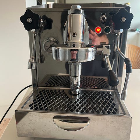 For en måned siden fik den en gennemgåede service, hvor serviceteknikeren vurderede den som yderst velholdt. Kedlen er rigtig god stand, da der altid er blevet brugt filtreret vand. Maskinen er i rigtig god stand og har mange gode år i sig endnu. Det er en single boiler maskine.