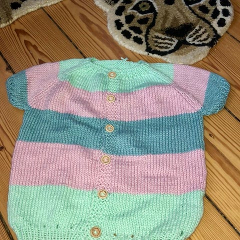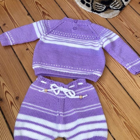Det fineste lille sæt bestående af sweater i lysegrå med mørkegrå striber og fin krave samt