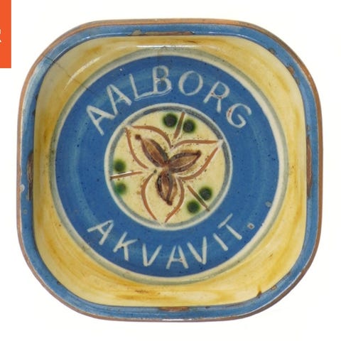 Porcelæn, Reklameaskebæger, OVEC Bjerregaard., Aalborg akvavit. Rød Aalborg.