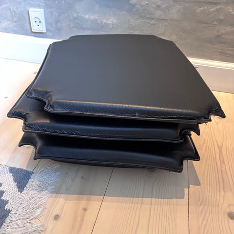 Smykke sort-grå hynder af uld. Meget skønne og holdbare og passer godt til Y-stolen således man stadig kan se dens design.
