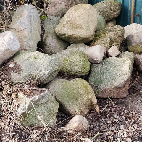 Vi har revet gammelt landbrug ned og i den forbindelse har vi mange sten til overs som vil være ideelle til haven.