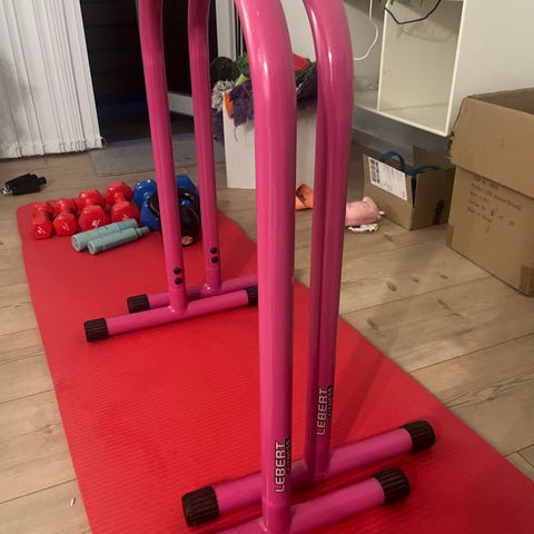 Kettler træningsstation med håndtag og gule remme i metalramme. Stationen er egnet til forskellige kropsvægtøvelser som dips, støtteøvelser og træning med remme. Konstruktionen består af en sort stålramme med polstrede håndtag og to justerbare gule stropper fastgjort med metalringe. Velegnet til hjemmetræning, hvor der er behov for en kompakt løsning til overkrops- og coretræning.