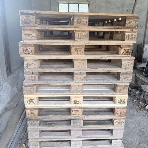 EUR paller i træ. Standard europaller egnet til opbevaring og transport af gods. Pallerne kan anvendes i lager, værksted eller til andre formål, hvor stabile træpaller er nødvendige.