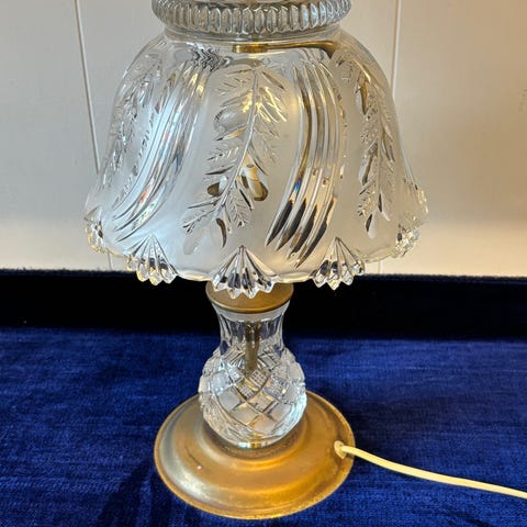 Bordlampe i messing med glaskuppel