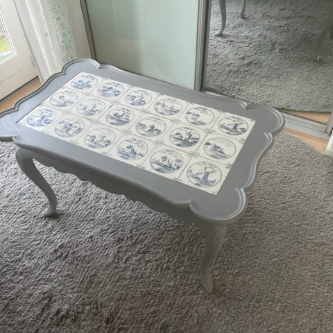 Smukt kakkelbord. Et par fliser sidder lidt løse og træstempler er slidt og kræver en klat lim men meget smukke kakler. Sælges derfor billigt til 400 kr.