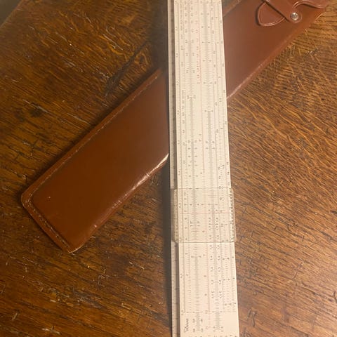 2 "små" - 15 cm. - regnestokke fra UTO & DIWA - begge har skala på begge sider af "skyderen".