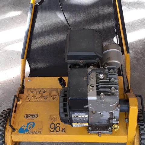 Ginge cylinderplæneklipper med B&S benzinmotor. Starter fint. Trænger til slibning.