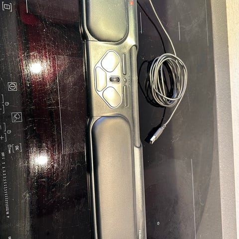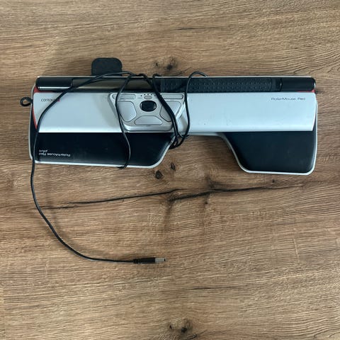 Contour RollerMouse Red plus mus. Centralt placeret ergonomisk mus til brug foran tastaturet. Enheden har rullestang til markørstyring samt integrerede knapper til klik og scroll. Forbindes via USB-kabel. Velegnet til stationær computerarbejdsplads, hvor musen kan bruges sammen med almindeligt tastatur for at reducere bevægelser med armen.