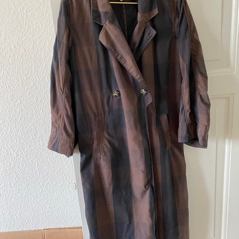 Ganni frakke til kvinder i beige. Jakken er i størrelse L (40) og fremstillet i en bomuldsblanding med 35 % bomuld og 65 % polyester. Modellen har taljesnøre, der kan justeres, samt store frontlommer med klap og knaplukning. Frakken har lynlås og trykknapper foran samt kontrastfarvet foer. Velegnet som overgangsjakke eller yderlag i køligere vejr.
