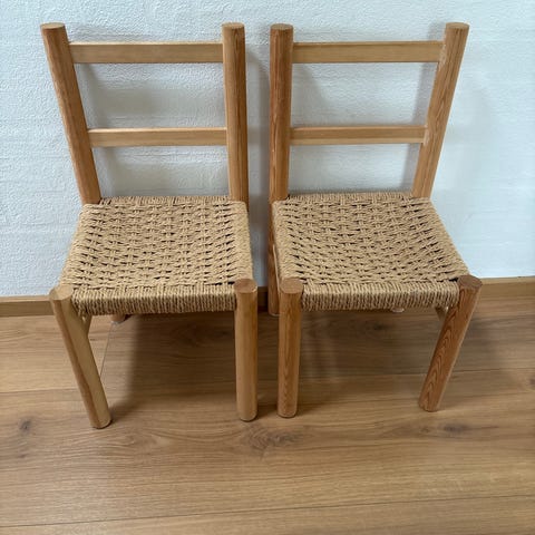 2 børnestole i fyrretræ.
