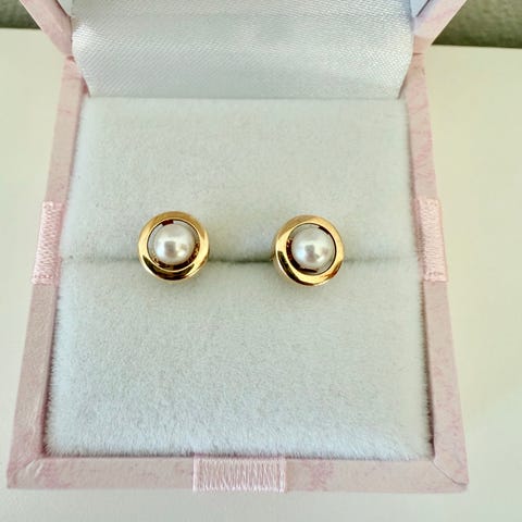 Gammel retro 14 k guld ørestikker med perler