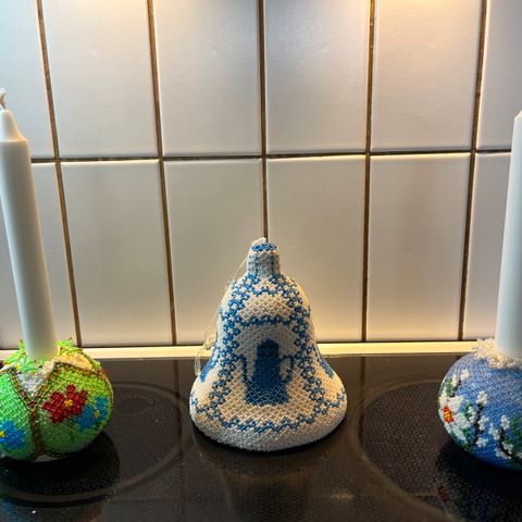 Søde påske og jule perle klokker til ophæng syet i perler. 8 cm høje, 9 cm brede.