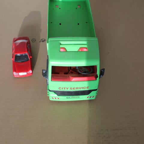 Blandede legetøjsbiler og en båd