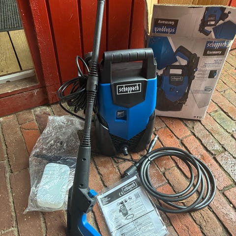 Højtryksrenser fra Scheppach med 1600W motor og 135 bar.
