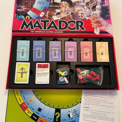 Matador og Scribblish brætspil. Sættet indeholder spilplade, spillebrikker, huse og hoteller, kort og pengesedler til Matador samt spilplade, kort og tilbehør til Scribblish. Egnet som familiespil og til hyggespil for flere deltagere. 2 spil for 150kr i fin stand.,,,,