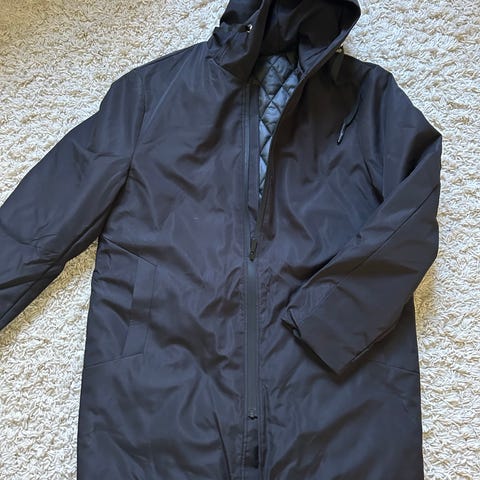 Sandro vinterjakke til herre i sort farve, størrelse XL. Jakken er fremstillet i polyester og har quiltet, vatteret design med hætte. For- og lynlåslukning foran. Velegnet som varm overtøjsjakke i de kolde måneder.