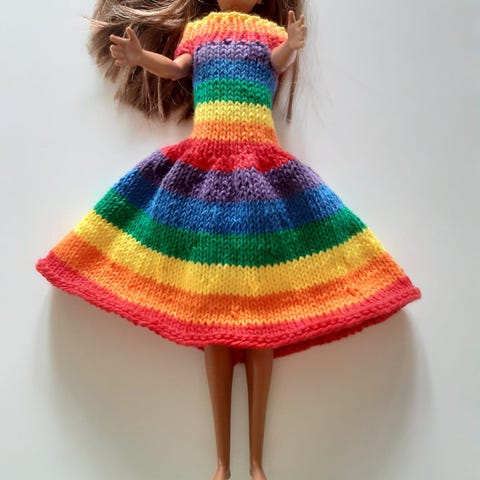 Ubrugte hjemmestrikkede Barbie kjoler. Flere farver
