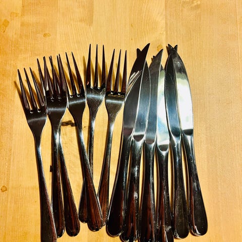 Fire helt nye spiseskeer i original emballage, Tåler opvaskemaskine.