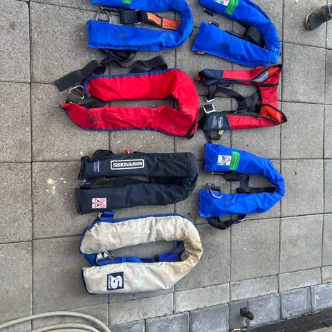 En god solid oppustelig redningsvest som er behagelig at have på. Er kun brugt en håndfuld gange og er stadig næsten som ny.