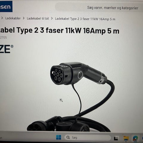 Ladekabel Mode 3 IEC 61851-1 til opladning af elbil. Kablet er mærket med typebetegnelse 08914090102B0 og er beregnet til 32A, 480V, 3-faset drift med kapslingsklasse IP44.